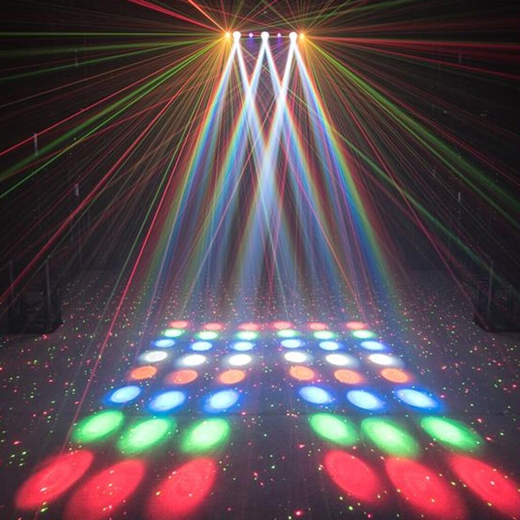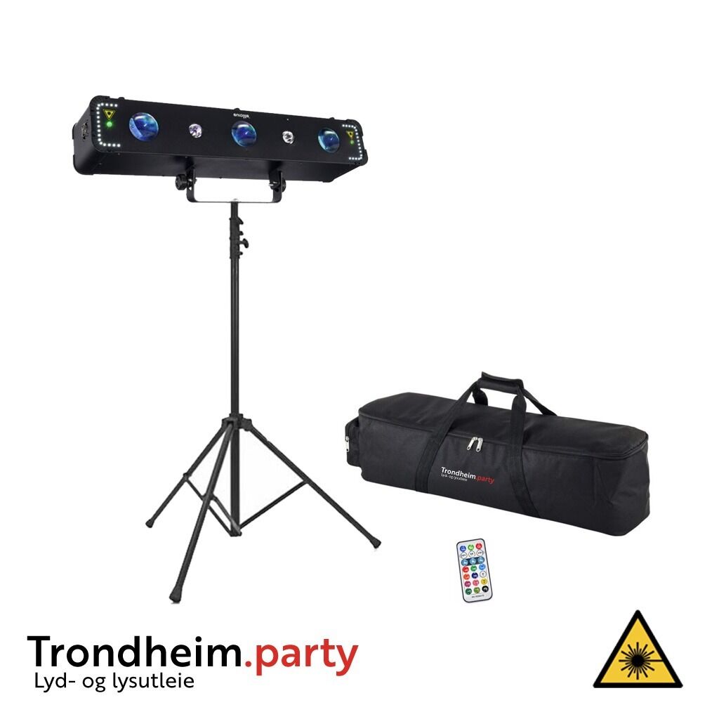 Vår Multieffekt lyspakke gir arrangementer utrolig fengende og variert lysopplevelser. Pakken består av Eurolite LED Multi FX Laser Bar. Med totalt 192 LED-er skaper lampen imponerende vekslende RGBAW-mønstre, mens de 2 UV LED-ene gir fantastiske Blacklight-effekter. 36 Cold White 0,5 W SMD LED-er legger til raske, dynamiske strobeffekter og 4 Laserdioder projiserer tusenvis av røde og grønne laserstråler.